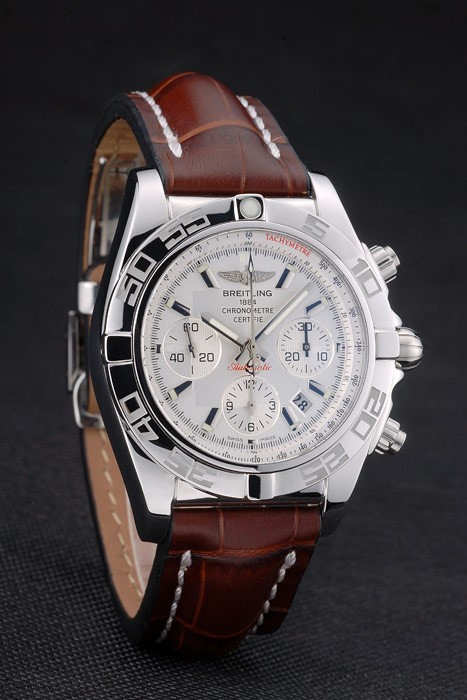 Breitling Montre Homme Swiss Made Certifié en Acier Inoxydable Lunette Brown Croco Cuir Bracelet Cadran Blanc [80285]