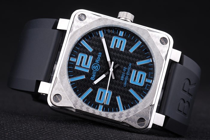 Bracelet: Bell&Ross logo et produit code gravé bracelet en caoutchouc noir avec l’acier inoxydable crochet boucle clasp