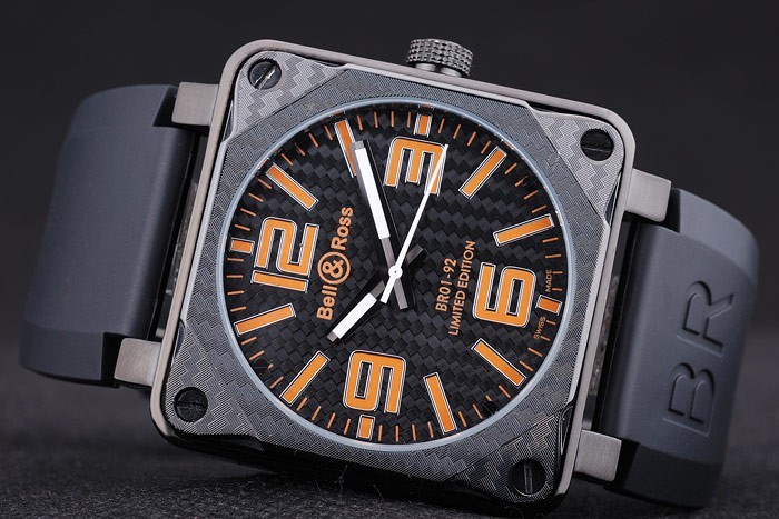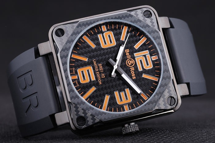 Bracelet en acier inoxydable: Heat gaufré Bell&Ross logo et le code produit bracelet en caoutchouc noir avec l’ion -plated crochet-boucle clasp