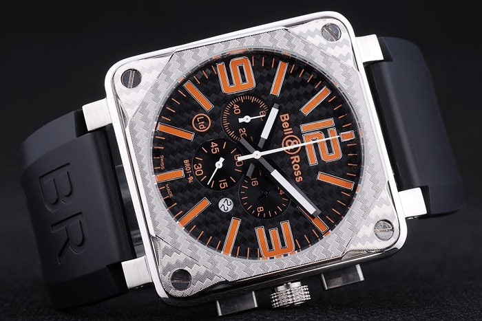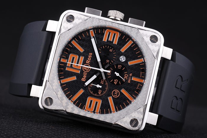 Crown: Bell&Ross logo gravé couronne cutwork en acier inoxydable avec rectangulaires à bouton-poussoir couronnes de chaque c té de it