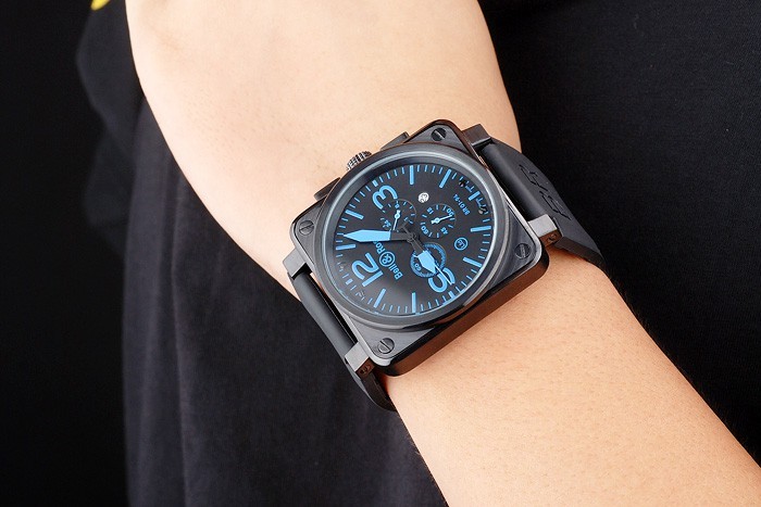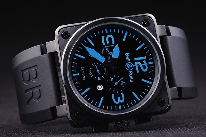 Crown: couronne cutwork ion-plaqué avec Bell&Ross logo et une couronne carrée de chaque c té de la principale crown