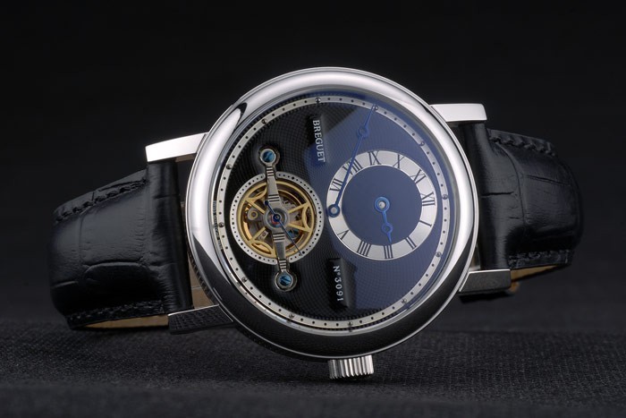 Breguet Classique Complications Boîtier en acier inoxydable bracelet en cuir noir 80158