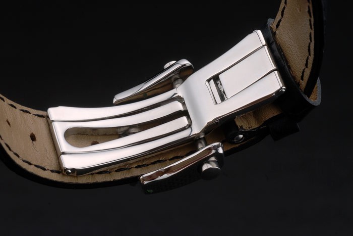 Bracelet en acier: Breguet en relief crocodile noir bracelet en cuir de chaleur avec gravé Brequet acier inoxydable poli pli en crochet boucle clasp