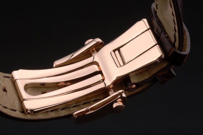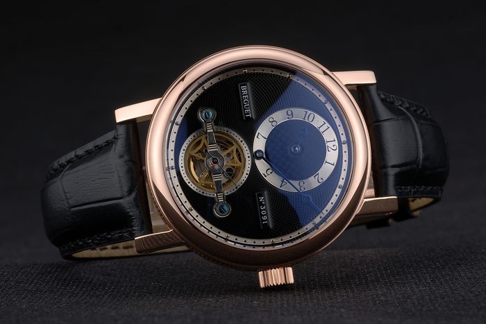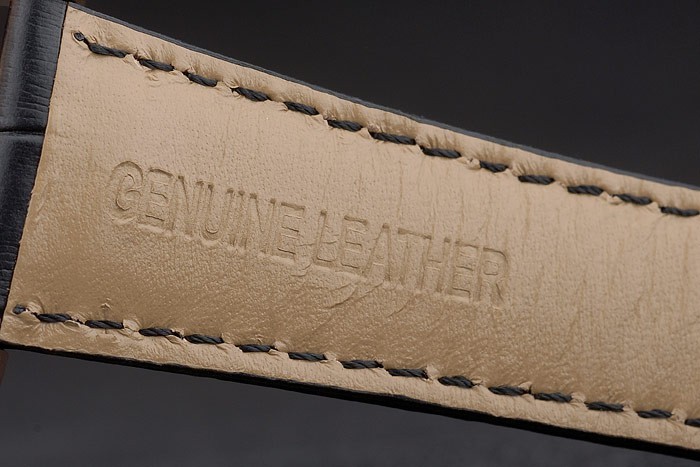 Bracelet en acier: Bréguet chaleur en relief crocodile bracelet en cuir noir Brequet gravé avec 18k rose plaqué or fold-in crochet-boucle clasp