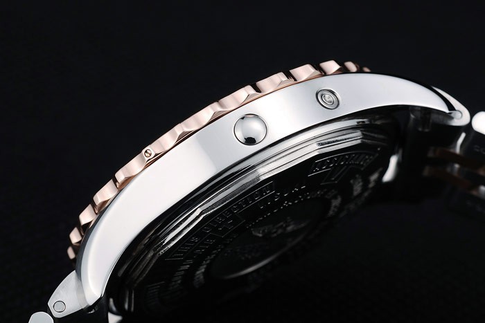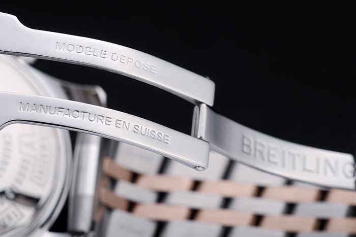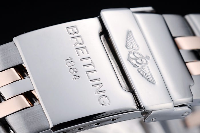 Bracelet en acier inoxydable: acier inoxydable poli et de rose -Gold bracelet plaqué de lien avec Breitling 1884 et logo gravé fois en bouton-poussoir clasp