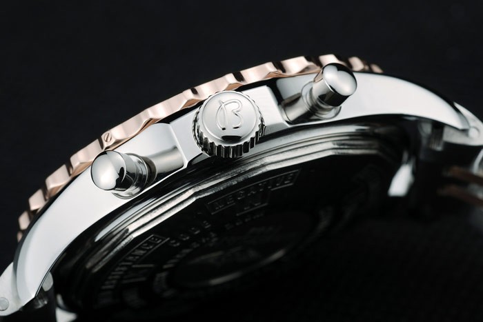 Crown: couronne en acier inoxydable poli de cutwork avec Breitling logo et deux petits boutons-poussoirs couronnes en acier inoxydable de chaque c té de it