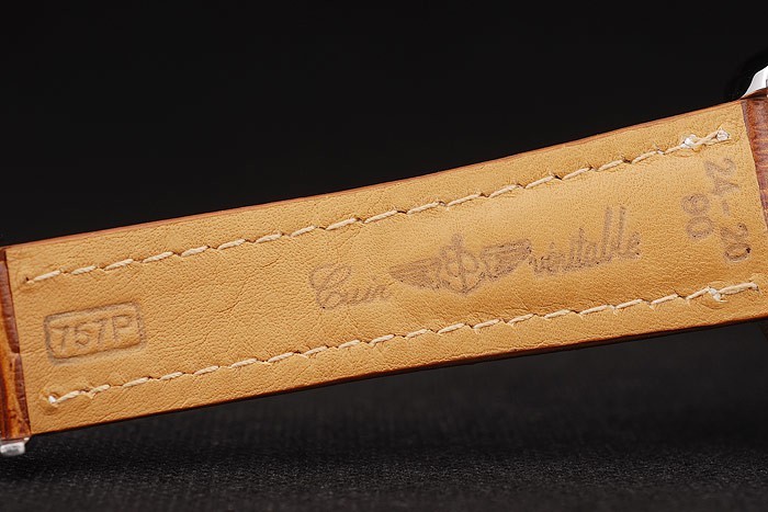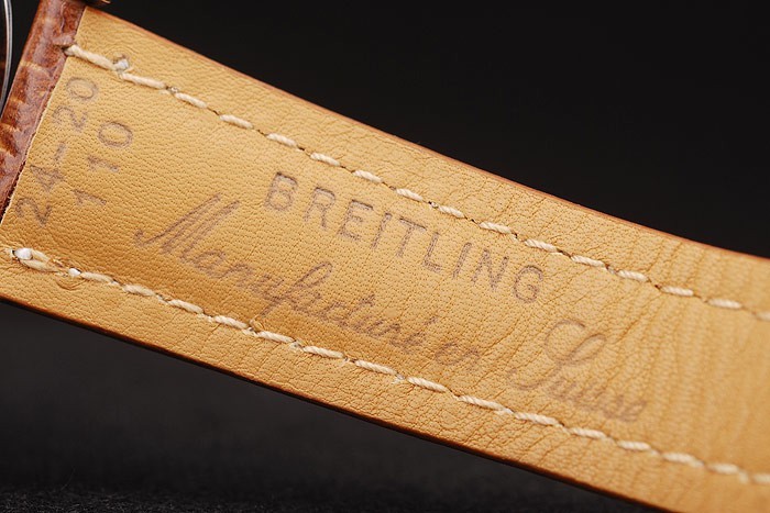 Bracelet en acier inoxydable: Heat gaufré Breitling bracelet en cuir brun crocodile blanc coutures de fil et un logo Breitling gravé pliant en acier inoxydable clasp