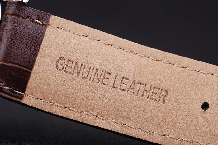 Bracelet en acier inoxydable: Heat gaufré MontBlanc crocodile bracelet en cuir brun avec le nom et le logo MontBlanc gravé poli acier inoxydable flip-dessus le crochet clasp