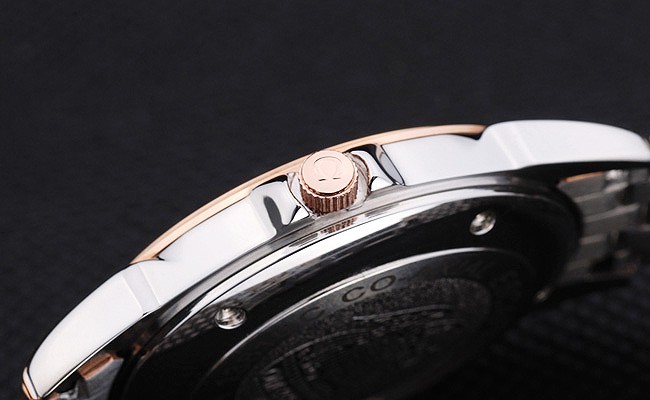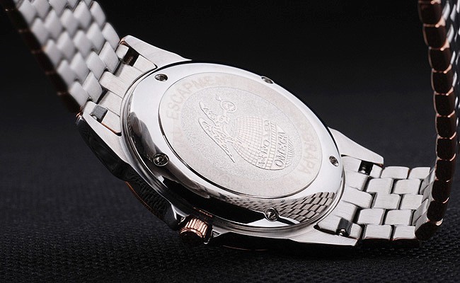 Retour: Acier inoxydable vissé affaire avec Omega inscriptions