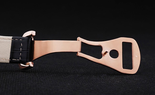 Bracelet or: Bracelet en cuir de crocodile avec coutures blanches et Omega logo gravé or jaune crochet boucle clasp
