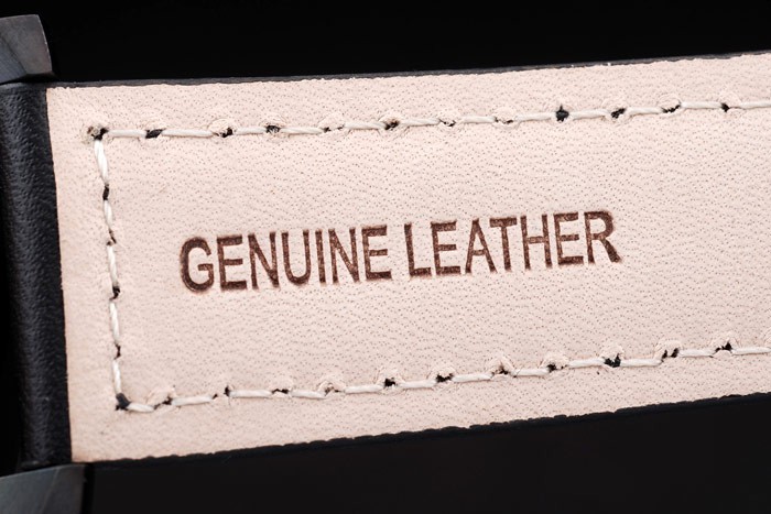 Bracelet en acier: bracelet en cuir noir avec la chaleur en relief Luminor Panerai timbre et d’ions acier inoxydable plaqué crochet boucle déployante avec Panerai engraving