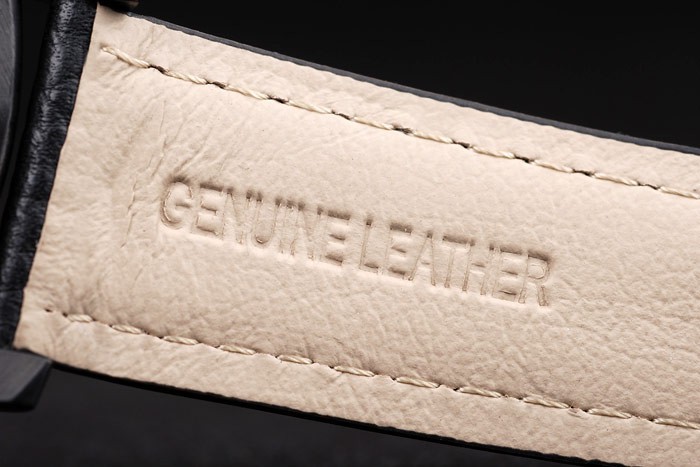 Bracelet: bracelet en cuir noir avec coutures blanches et de la chaleur en relief Luminor Panerai timbre et d’ions acier inoxydable plaqué crochet boucle déployante avec Panerai engraving