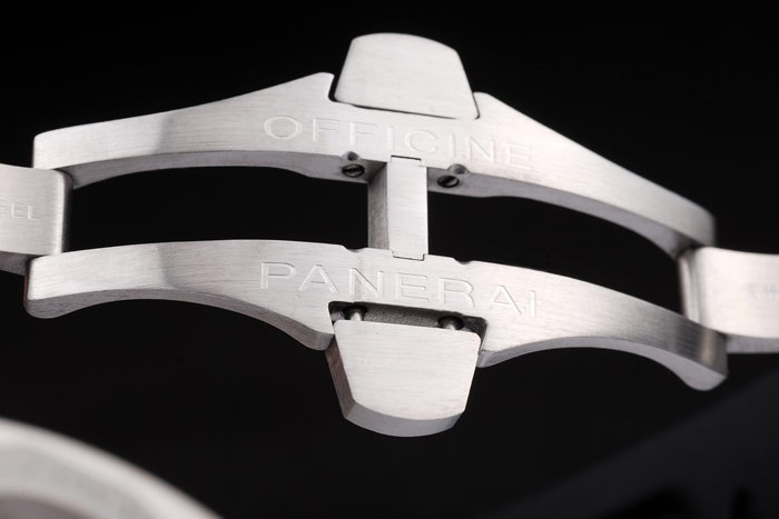 Bracelet en acier inoxydable: Panerai Italie en relief bracelet en caoutchouc noir avec l’acier inoxydable brossé Officine Panerai gravé fois en crochet clasp