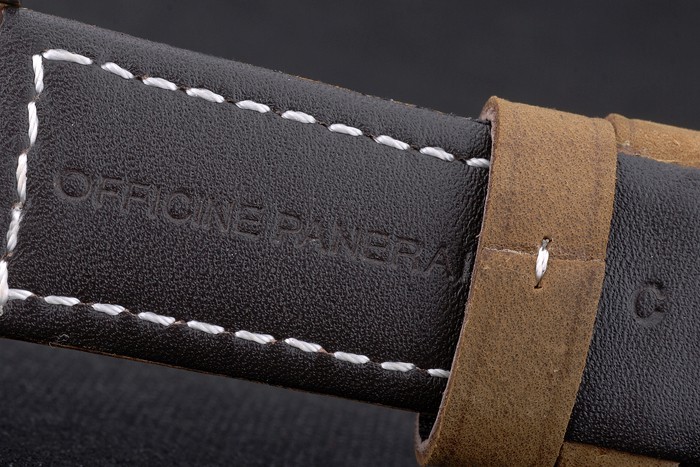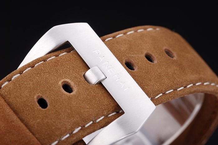 Bracelet: Heat gaufré Officine Panerai Italie estampillé tan bracelet en cuir en daim avec inox crochet boucle déployante