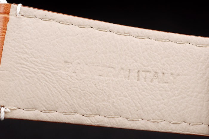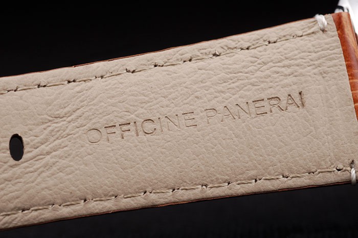 Bracelet en acier inoxydable: Brown bracelet en cuir de crocodile avec coutures blanches et de la chaleur en relief Officine Panerai Italie timbre et acier inoxydable poli crochet boucle déployante avec Panerai engraving