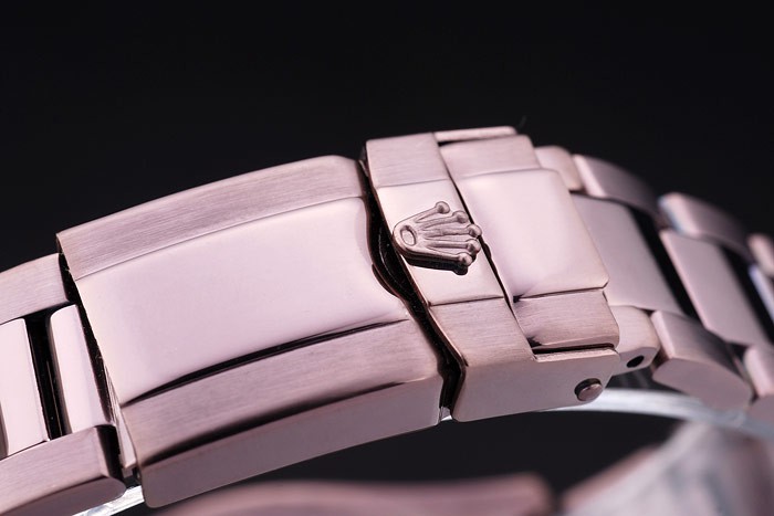 Bracelet en acier inoxydable: poudre brune Rosy enduit brossé bracelet à maillons en acier inoxydable avec Rolex logo déploiement clasp