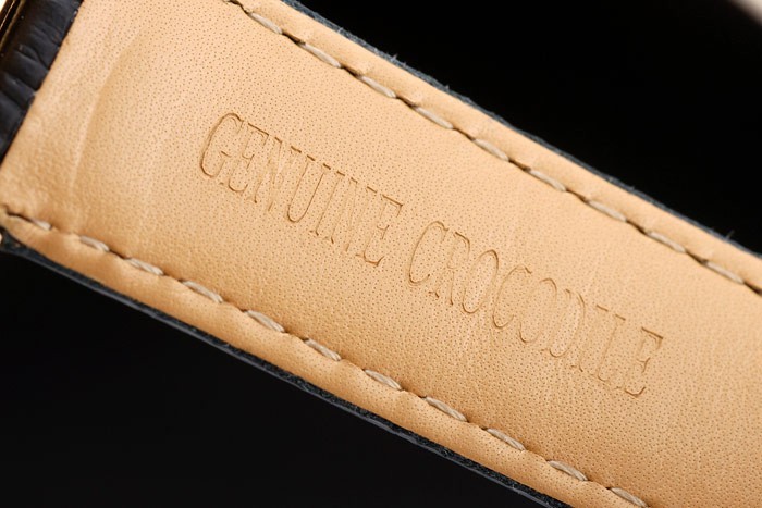 La montre Rolex Daytona Réplique 4839 est vraiment une montre classique. Son design élégant en plaqué or jaune et bracelet en cuir de crocodile noir lui donne un look sophistiqué et intemporel. Le mouvement cinétique de qualité japonaise assure une précision fiable. La lunette en or jaune avec tachymètre ajoute une touche de luxe supplémentaire. La couronne en or 18 carats avec le logo Rolex est un détail élégant. En bref, cette montre est parfaite pour les hommes à la recherche d’un accessoire élégant et de haute qualité.