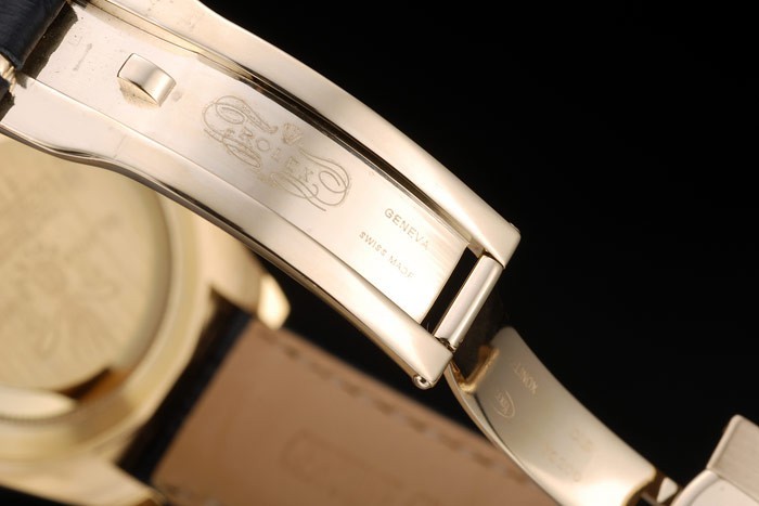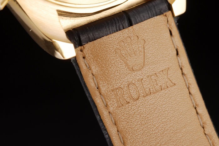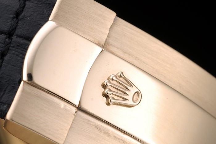 Bracelet: estampé crocodile noir bracelet en cuir de chaleur Rolex gravée en or jaune boucle déployante avec logo Rolex sur top