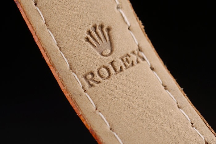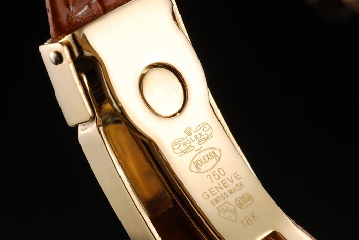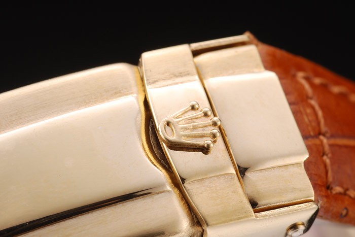 Bracelet: relief crocodile bracelet en cuir brun de chaleur Rolex gravée en or jaune boucle déployante avec logo Rolex sur top