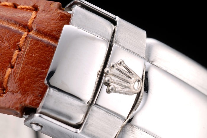 Bracelet en acier inoxydable: Rolex en relief crocodile bracelet en cuir brun de chaleur avec gravé en acier inoxydable boucle déployante avec logo Rolex sur top