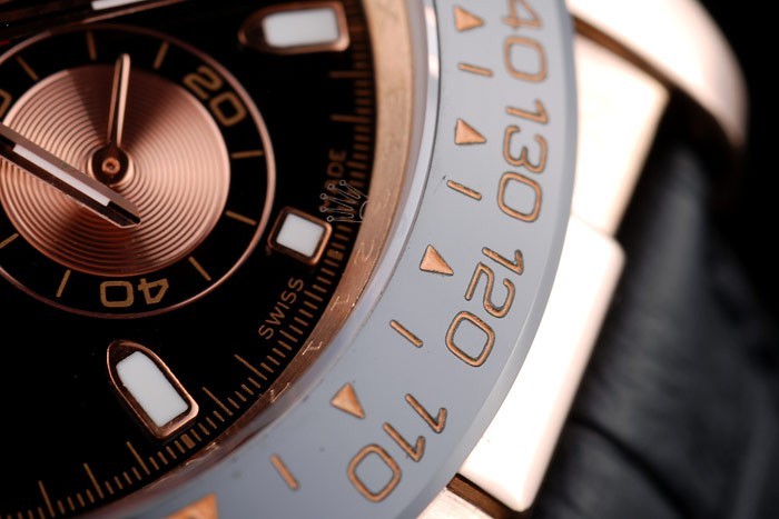 Crown: 18k or rose couronne cutwork avec Rolex logo et deux petits cutWork bouton-poussoir couronnes de part et d’autre de it