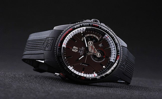 Bracelet en acier inoxydable: texturé bracelet en caoutchouc noir avec la chaleur en relief et gravé crochet timbre Tag Heuer clasp