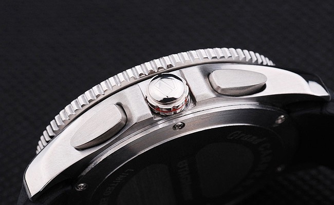 Crown: couronne cutwork en acier inoxydable poli avec Tag logo Heuer ainsi que deux couronnes supplémentaires de chaque c té et un sur le face supérieure corner