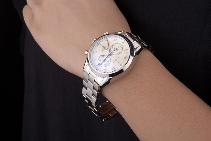 Crown: couronne cutwork en acier inoxydable poli avec Tag Heuer logo ainsi que deux couronnes supplémentaires, une de chaque épaisseur side