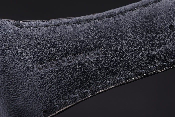 Bracelet en acier: Bracelet en cuir noir avec tampon thermique gaufré et Tonino Lamborghini Tonino Lamborghini logo gravé et gaufré or rose plaqué rabattable en flip-over crochet clasp