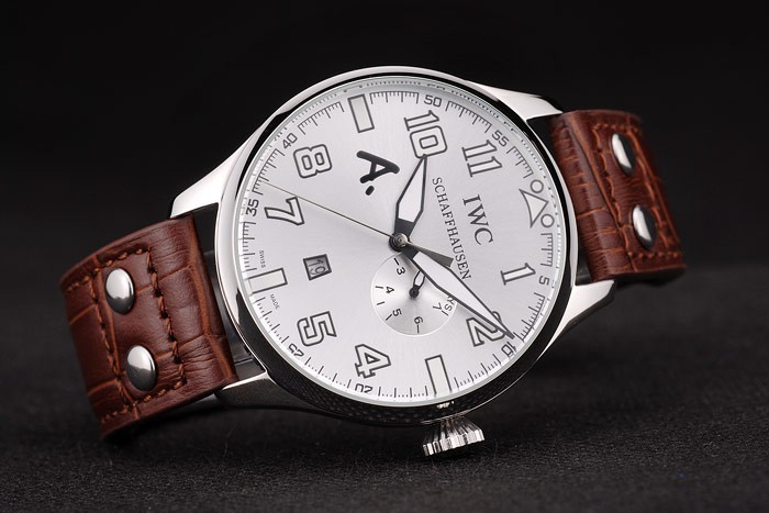 Le bracelet en cuir brun de chaleur avec relief crocodile, doté d’une boucle déployante en acier inoxydable brossé gravée IWC, offre un confort optimal tout au long de la journée. La grande taille du boîtier (53 x 45 mm) confère à cette montre une présence imposante au poignet.