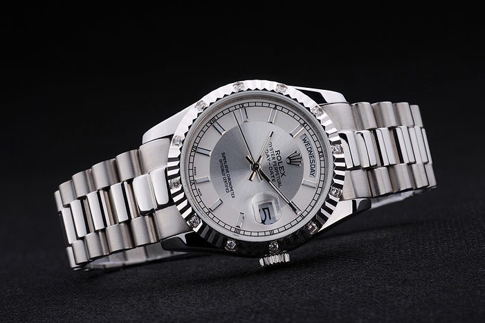 La Rolex Day-Date mesure 45 x 36 mm, avec une épaisseur de 13 mm, permettant de se fondre parfaitement au poignet. Son bracelet en acier inoxydable, habilement combiné entre brossé et poli, affiche une élégante gravure du logo Rolex sur le fermoir caché. Le verre en cristal saphir assure une protection optimale, tandis que la couronne cutwork en acier inoxydable poli rehausse son allure sophistiquée. Avec ses finitions soignées et son esthétisme raffiné, elle attire tous les regards et s’impose en tant qu’accessoire incontournable dans le monde de l’horlogerie.